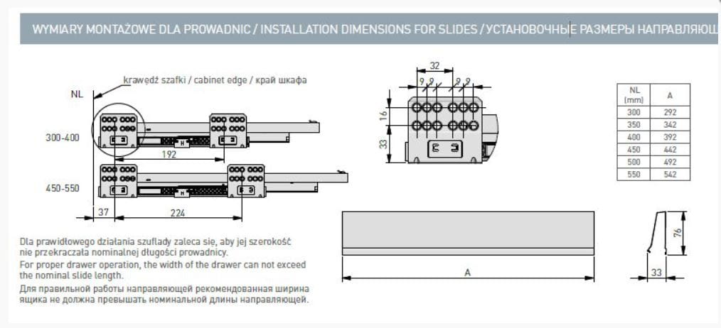 Rodzaj szuflady: wewnętrzna, standard